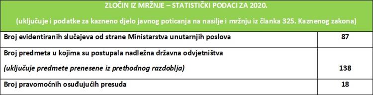 Upravo u cilju adekvatnog prikupljanja relevantnih statističkih podataka, ali i razgraničenja obveza pojedinih institucija koje se bave suzbijanjem zločina iz mržnje, na prijedlog Ureda za ljudska prava i prava nacionalnih manjina Republike Hrvatske izrađen je novi Protokol o postupanju u slučaju zločina iz mržnje koji je Vlada Republike Hrvatske usvojila dana 8. travnja 2021. Navedenim Protokolom detaljnije su određene obveze nadležnih tijela koja sudjeluju u otkrivanju, postupanju i praćenju rezultata postupaka vođenih zbog zločina iz mržnje, odredbe o sastavu i nadležnosti Radne skupine za praćenje zločina iz mržnje, način i sadržaj suradnje između nadležnih tijela koja sudjeluju u otkrivanju, postupanju i praćenju rezultata postupaka vođenih zbog zločina iz mržnje te ostale aktivnosti nadležnih tijela koja sudjeluju u otkrivanju, postupanju i praćenju rezultata postupaka vođenih zbog zločina iz mržnje, a odnose se na edukaciju o suzbijanju zločina iz mržnje.